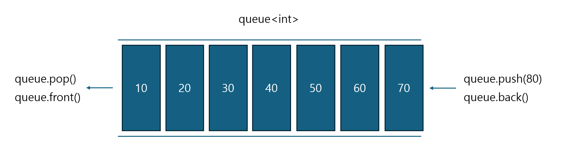 que.push(10); // 큐의 back에 원소를 삽입